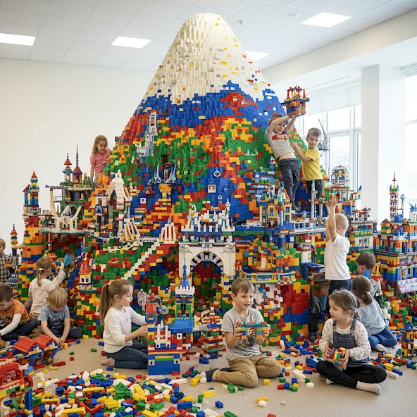 Am Kindernachmittag steht den kleinen Besucher:innen ein Berg aus 60'000 LEGO® Bausteinen zur Verfügung, womit sie die ausgestellten Gebäude in klein nachbauen oder ihre eigenen Traumhäuser, Villen und Städte kreieren können. Und das Beste ist: Ihr müsst am Schluss nicht aufräumen, sondern dürft eure Werke in der Ausstellung präsentieren!